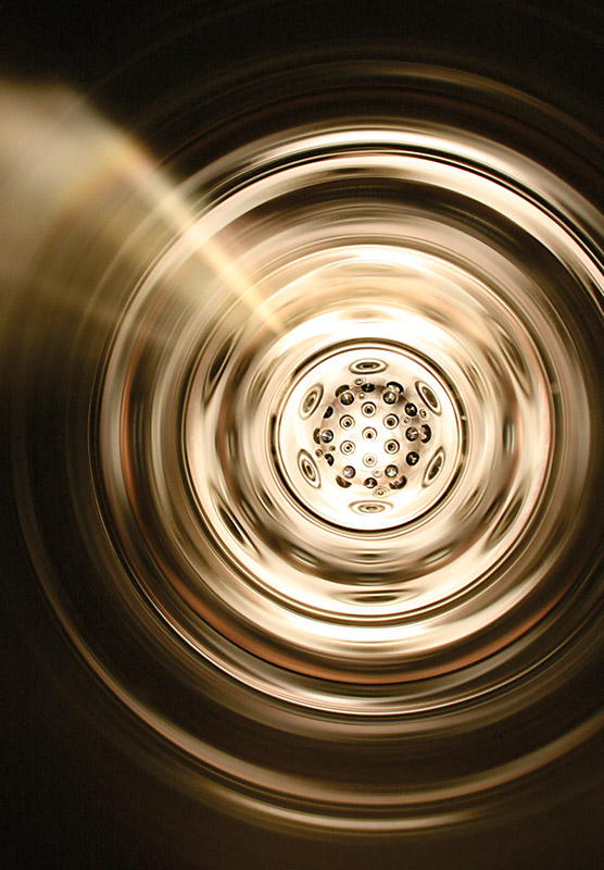 A rotating conducting wall, according to theory, should stabilize a linear plasma column against certain magnetohydrodynamic instabilities. Shown here is a view down the inside of such a wall, in the rotating wall machine at the University of Wisconsin–Madison. Along its 1-meter length, the 16-cm-diameter, glass- and copper-lined stainless-steel tube reflects the sixfold symmetry of the triangular array of seven plasma “guns” centered at the far end. To study the wall’s stabilizing effect, the Wisconsin researchers, led by Cary Forest, ignite an arc plasma in each gun and then propel the plasmas into the tube while it rotates at speeds approaching 7000 rpm. As predicted, the rotation did indeed increase the stable range of the plasma current, though some discrepancies remain to be explored. (C. Paz-Soldan et al., Phys. Rev. Lett., in press; image submitted by Carlos Paz-Soldan.)