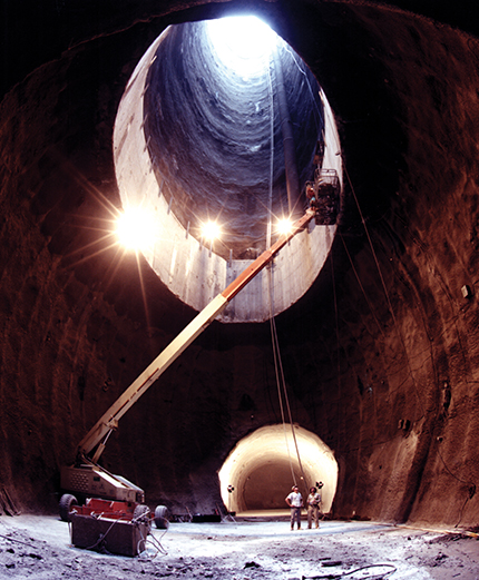 View along the Superconducting Super Collider main-ring tunnel, in early 1993. (Courtesy of Fermilab Archives.)