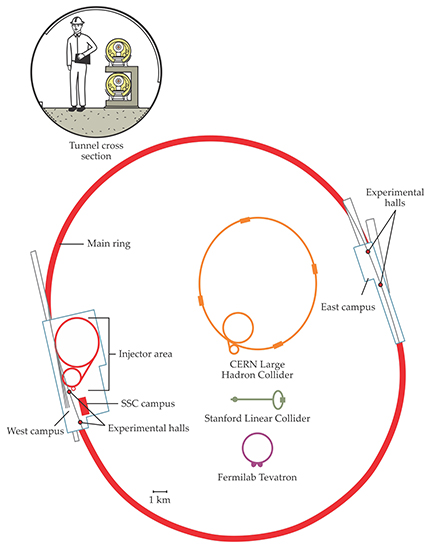 4. M. Riordan, L. Hoddeson, A. W. Kolb, Tunnel Visions: The Rise and Fall of the Superconducting Super Collider, U. Chicago Press (2015), especially pp. 264–73.