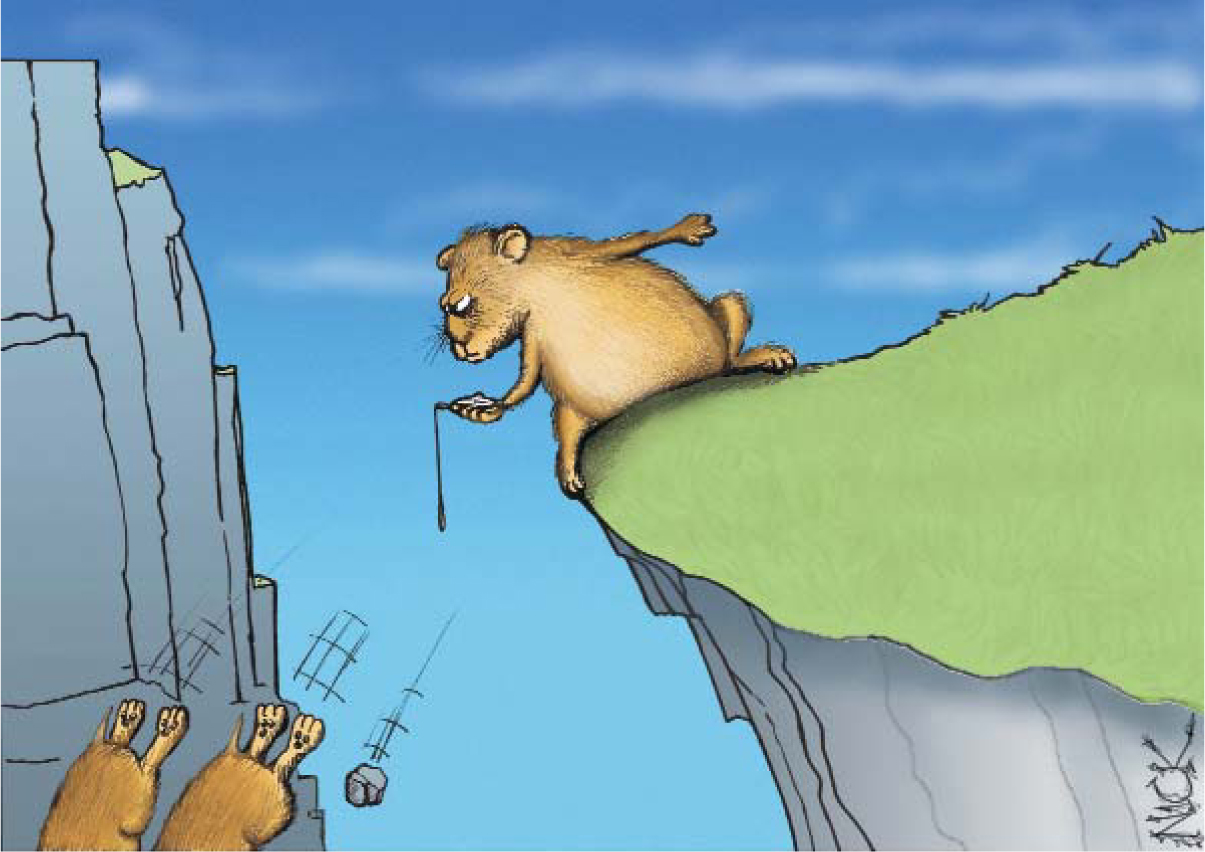 Fluffy, the “Galileo of the Lemmings,” with his stopwatch.