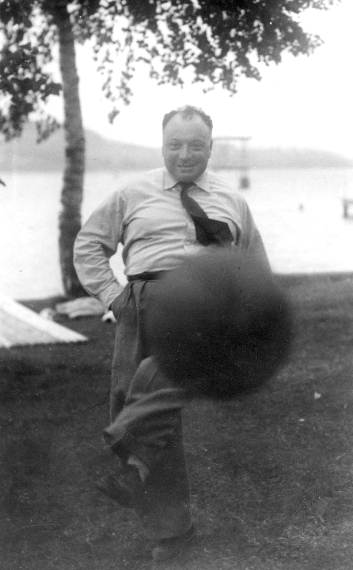 Having just one exposure left in my camera, I felt this would make too good a picture to miss. So I arranged with my friends an inconspicuous signal to send the ball once more within Pauli’s reach. It took me a moment to get the rangefinder adjusted. I was staring through it as I gave the signal, and my friends, by dissembled inadvertence, kicked the ball toward Pauli. The next things I was aware of were the camera smacking me in the face, my recoiling a step or two, and again hearing that bellowing laugh in the distance. Pauli had decided that my camera was his next target, and the ball had hit it squarely on the lens housing.