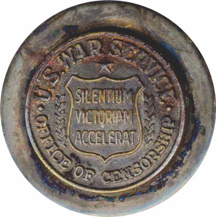 An employee pin given to workers at the US Office of Censorship: “Silence hastens victory.”