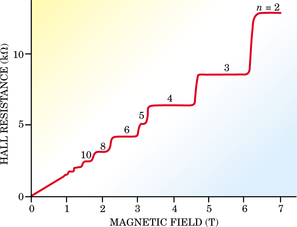 irrespective of the geometric details of the experiment or the imperfections of its materials (see figure 2). Von Klitzing was awarded the 1985 Nobel Prize in Physics for the discovery of this quantum Hall effect (see Physics Today, December 1985, page 17), and its precision has provided metrologists a superior standard of electrical resistance.