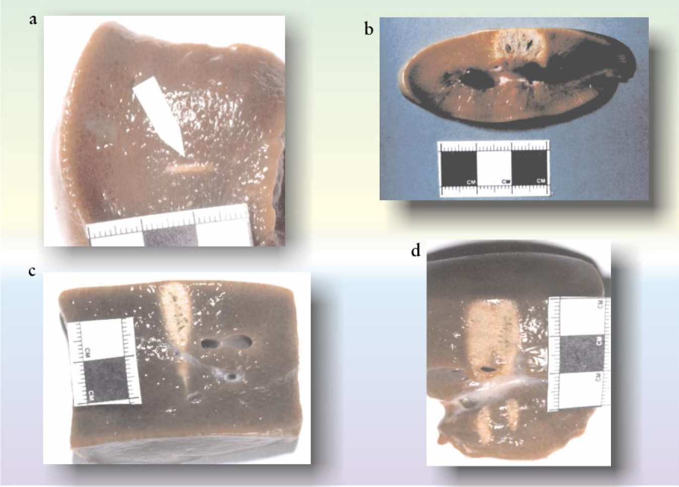 Damage due to heating is relatively uniform, and the spatial extent may be predicted. Cell killing due to acoustic cavitation, however, occurs only in close proximity to an oscillating bubble and is therefore more random in nature. Examples of thermal and “bubbly” lesions are shown in figure 2. Cavitation-damaged tissue contains holes or tears, but viable cells are still present. Cavitation on its own, therefore, is an inappropriate method for treating cancer, in which it is essential to destroy all cells.