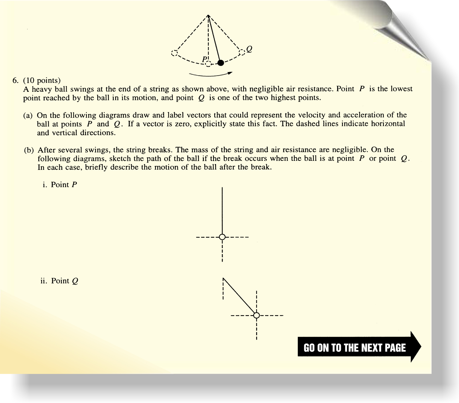 In figure 2, we present an example of a question from the 1998 AP Physics B exam that is in accord with this advice. There is nothing to calculate, yet the problem tests important concepts involving Newton’s laws and projectile motion.