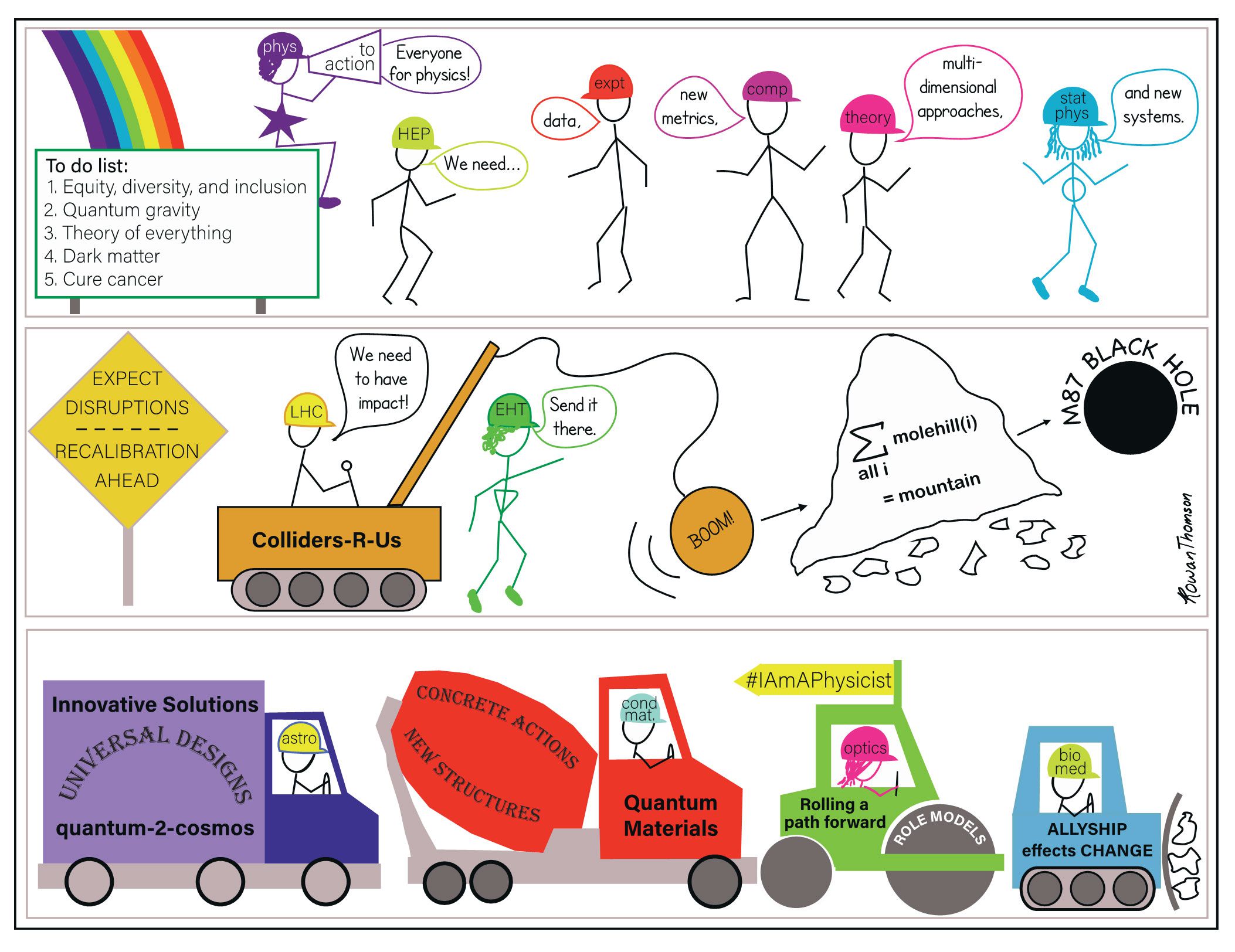 Now that we are fully aware of the magnitude of the problem, let’s put advancing EDI at the top of the list of open questions in physics and address it as we would any other challenge: through collaboration (see figure 4). That makes advancing EDI into an innovation challenge, which is something that we are very familiar with. As physicists, we know how to experiment, collect data, try different tactics, and learn from our successes and failures—all of which are needed to advance EDI. “Experimental” (real-life) evidence has shown that the “perturbation” (incremental) approach to EDI that the field has taken up to now has failed. That must motivate us to disrupt the established ways of doing things and make systemic changes. Only then will the field of physics achieve equity.