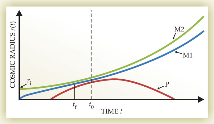 The early favorite among Friedmann’s three principal scenarios was the periodic world (P in figure 3). It allowed multiple cosmic births and deaths—reminiscent of Greek and Asian philosophies of reincarnation. But by the early 1990s, cosmologists generally assumed that the cosmos was flat, and that its expansion rate was asymptotically slowing to zero, with no cosmological constant to resist the pull of gravity. So the 1998 results that revealed an accelerating expansion came as a great surprise, deemed worthy of the 2011 Nobel Prize.