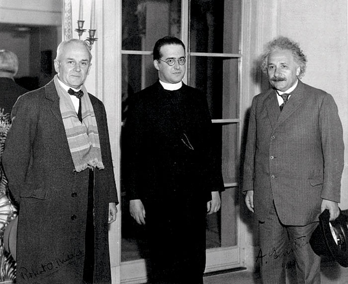 Figure 5. At Caltech in 1933 are Robert Millikan (chair of Caltech’s executive council), Georges Lemaître, and Albert Einstein. Lemaître, an ordained priest, was a physics professor at the Catholic University of Louvain, in Belgium.