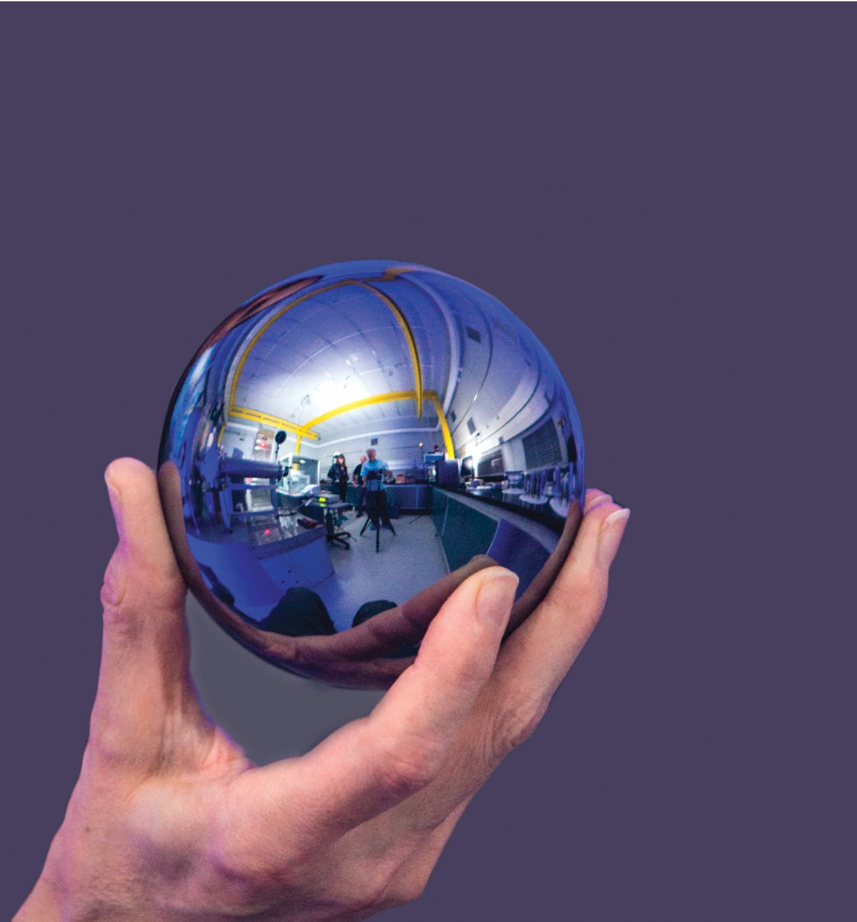 A silicon sphere like the ones used by the International Avogadro Coordination. The IAC measured the diameters and lattice constants of the nearly perfect spheres to count the atoms and convert from the mass of a silicon atom to the mass of the silicon sphere. (Courtesy of NIST.)