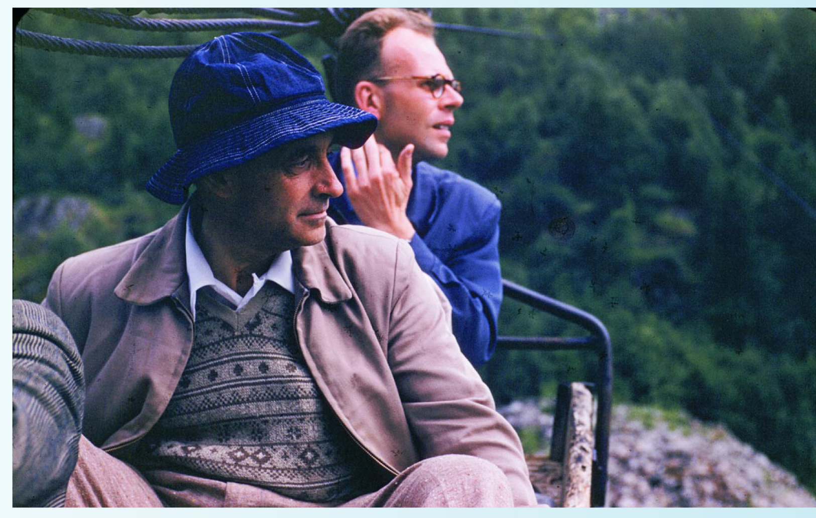 Arrival at the third-stage platform. Van Hove and Fermi appear grateful for deliverance from the clouds below.