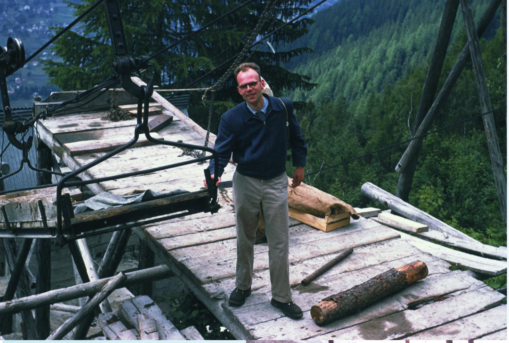 Another empty benne awaited us at this third and unmanned station, but boarding it posed a problem. As each of us entered and weighed it down, it sank another foot below the platform level. And as the last to board, I had to take an awkward leap that made the benne bounce ominously. There remained the question of how the benne would be set in motion. Our instruction at the earlier level had been to bang on the cable with a shoe. Fermi was happy to oblige with his boot, and that signal, evidently audible to someone at the top station, set us in motion for the final leg.