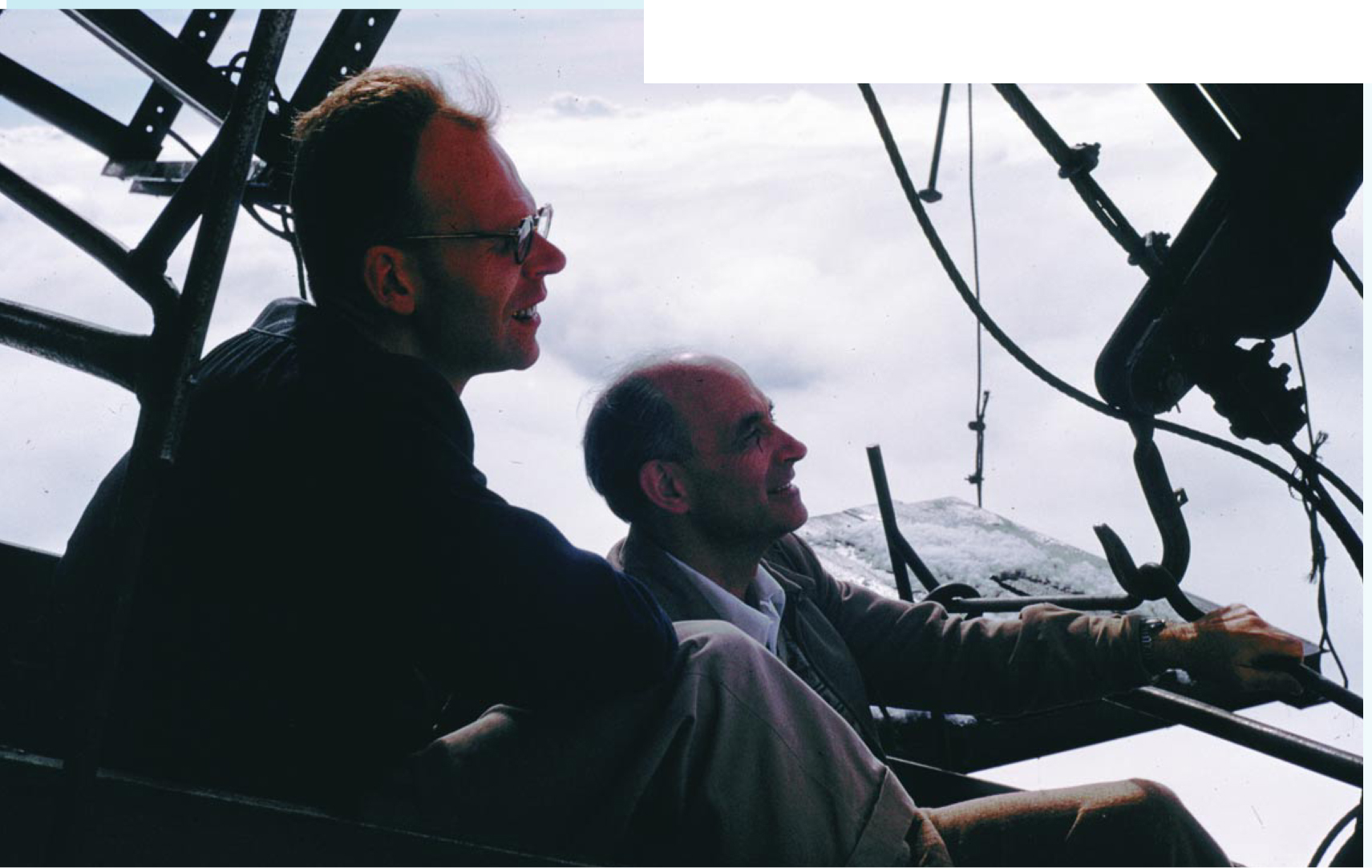 Ready for takeoff in the third-stage benne just below cloud level. From left: Sabry, van Hove, and Fermi.