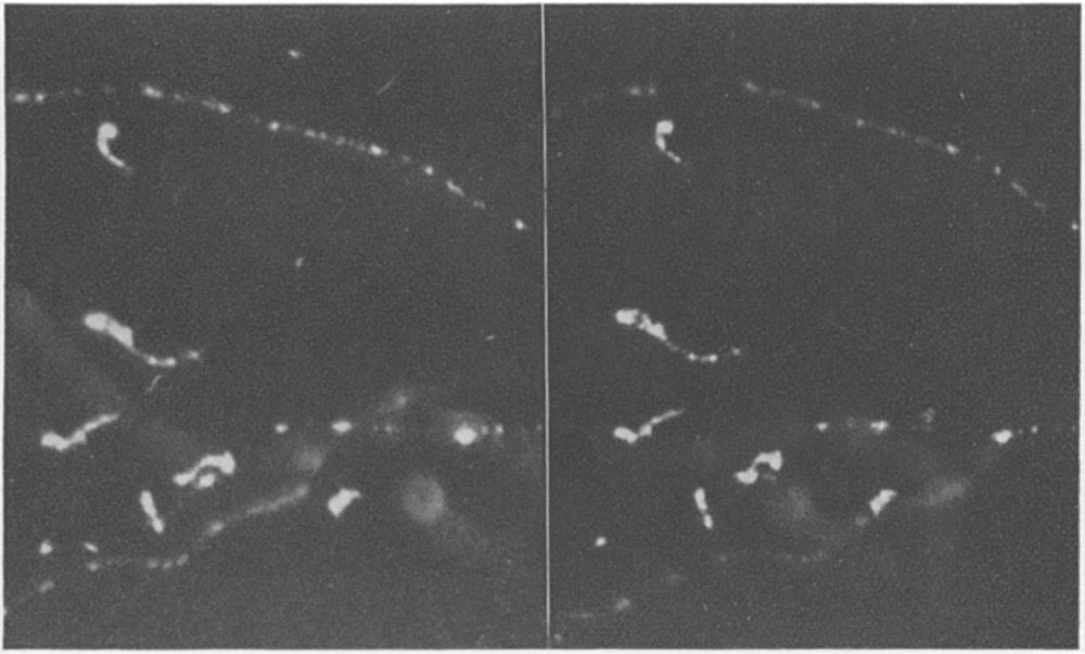So-called fish tracks, or spherical clouds with small tails, photographed by Charles Wilson in his cloud chamber and published in his 1923 paper. Wilson suggested in that article that the tracks were left by recoiling electrons from Compton scattering. (Reproduced from ref.