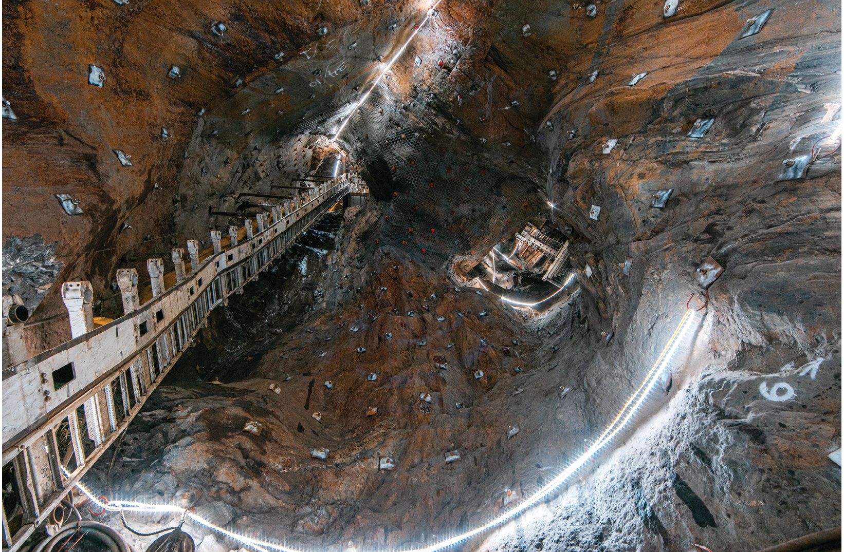 The ore pass at the Sanford Underground Research Facility in South Dakota. (Courtesy of Sanford Underground Research Facility, CC BY-NC-ND 4.0.)