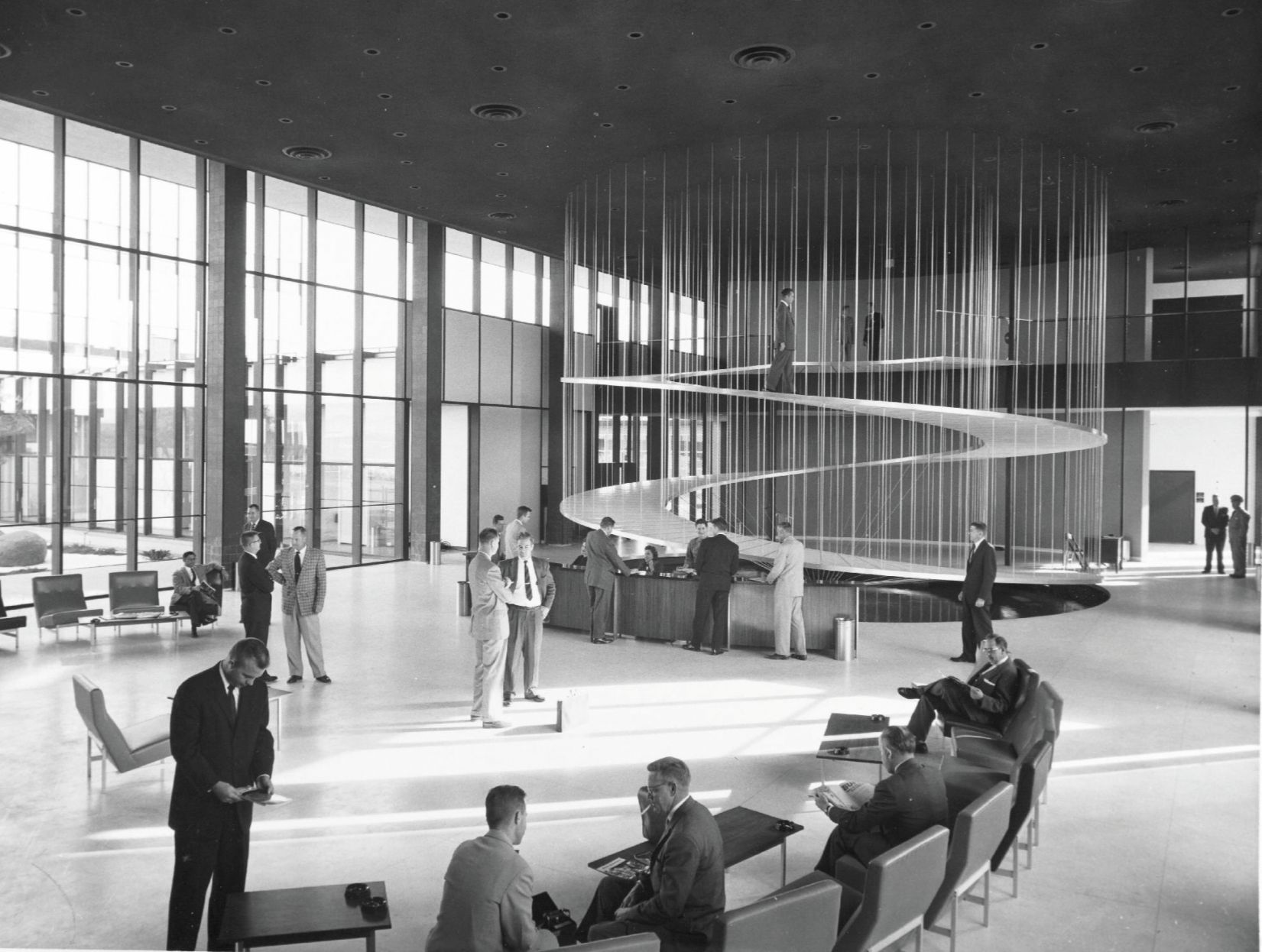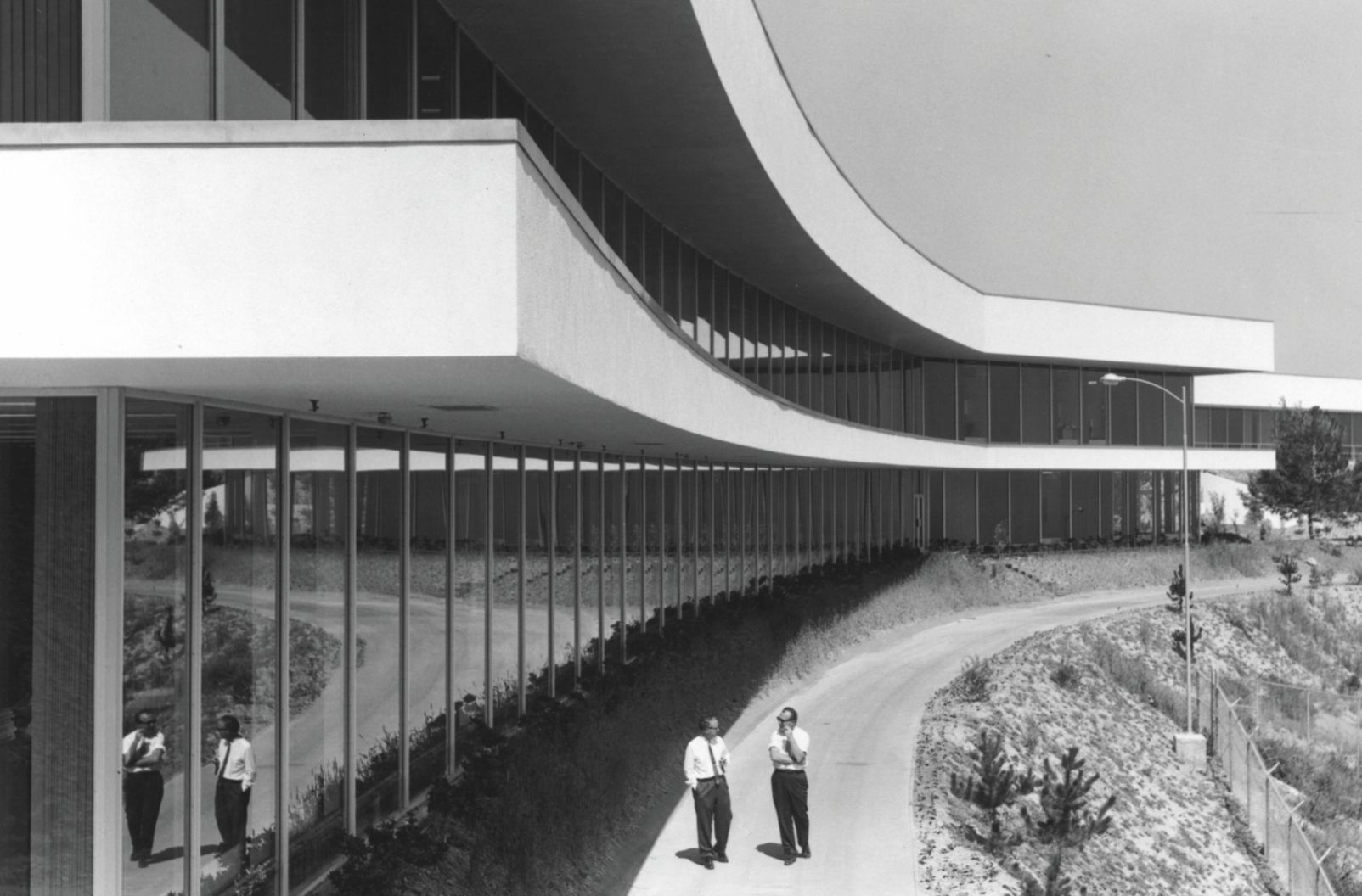 What could convey the right image more forcefully than architecture? Reiss considered Bell Labs’ facility claustrophobic, with scientists sequestered like monks in identical 8-by-10-foot cells. He hired Albert Martin Jr to design something contemporary and chic for the Science Center. Martin had recently conceived stunning new corporate campuses for TRW, the Aerospace Corp, and Atomics International.