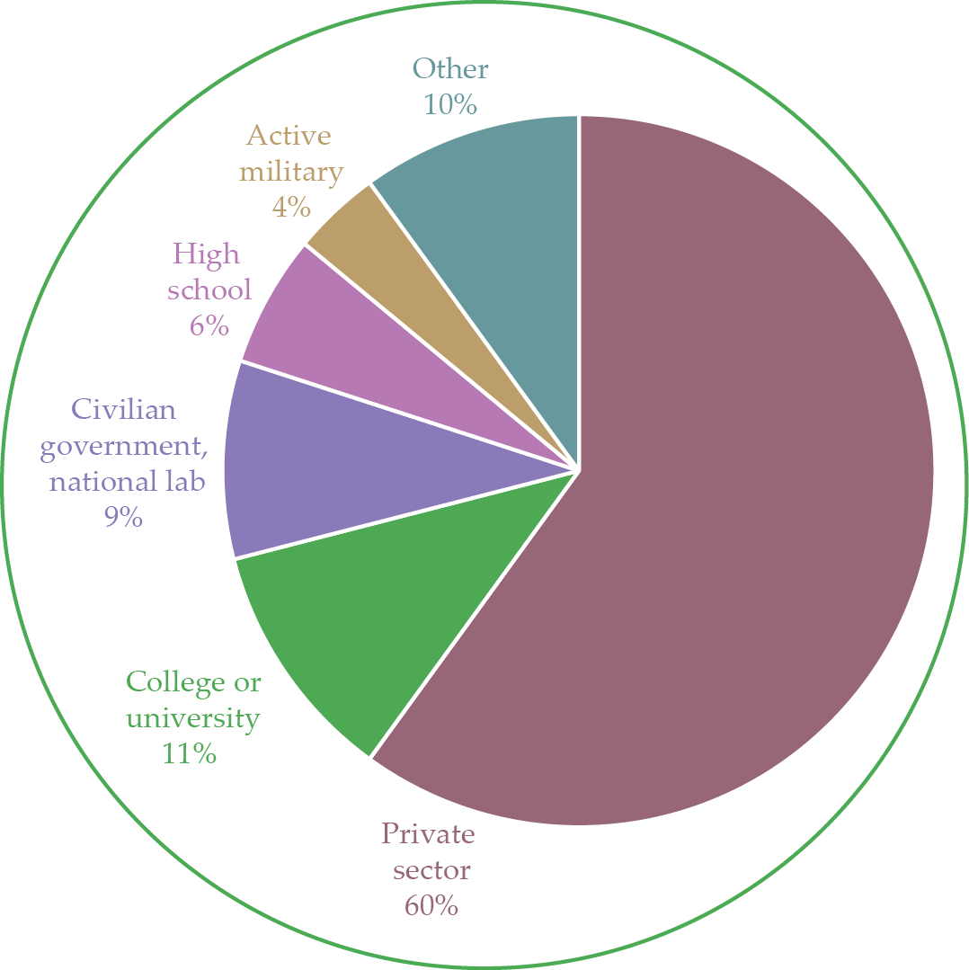 Each year, the AIP Research team surveys all US physics departments and bachelor’s and PhD recipients in physics. The most recent employment data are from the class of 2022.
