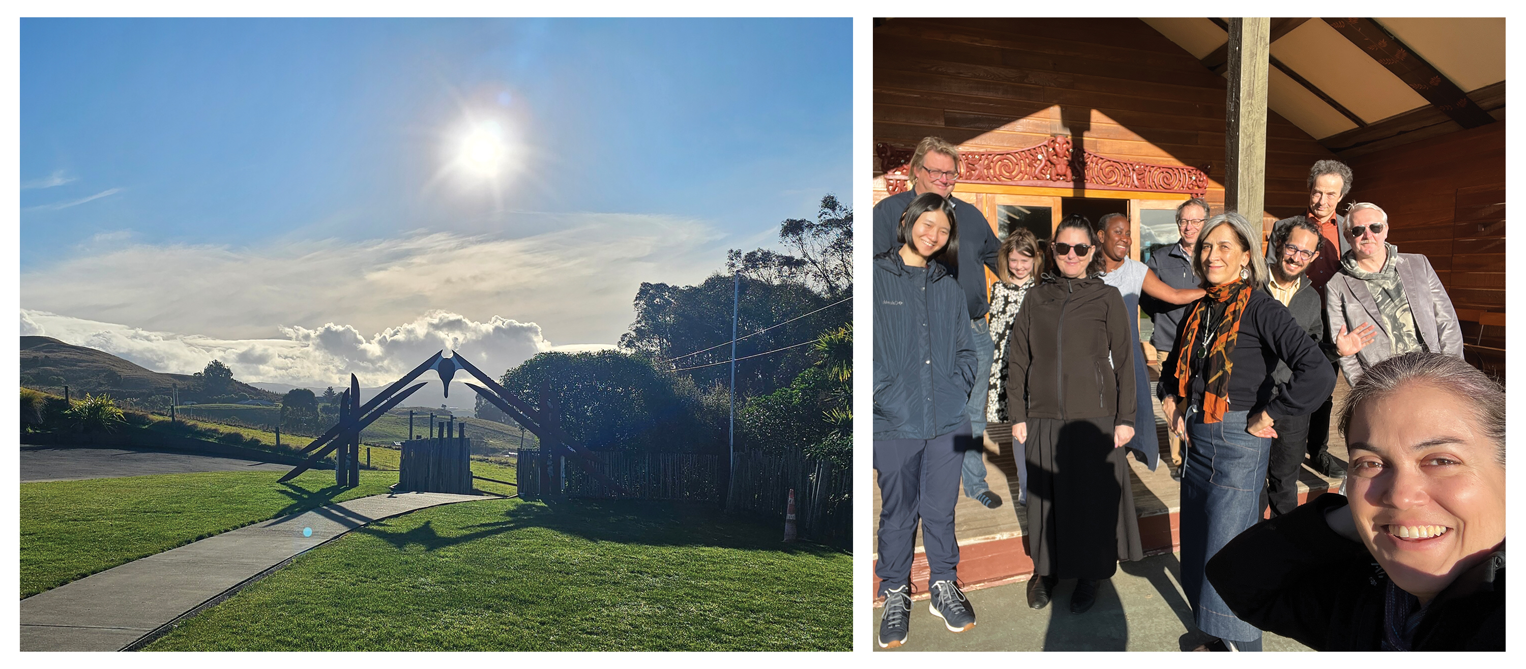 Artists, engineers, policymakers, and cultural leaders gathered in Dunedin, New Zealand, for a global IYQ event in July that focused on the intersection of art and quantum science and technology. The event kicked off with a Maori ceremony welcoming participants to the ancestral land of the Kāi Tahu tribe. Participants went through a traditional gateway (left, photo by Omar Costa Hamido) and convened in the tribal meeting house (right, photo by Jessa Barder). The hybrid event included talks, a roundtable discussion, and a presentation on the synergies between local indigenous knowledge and quantum theory.