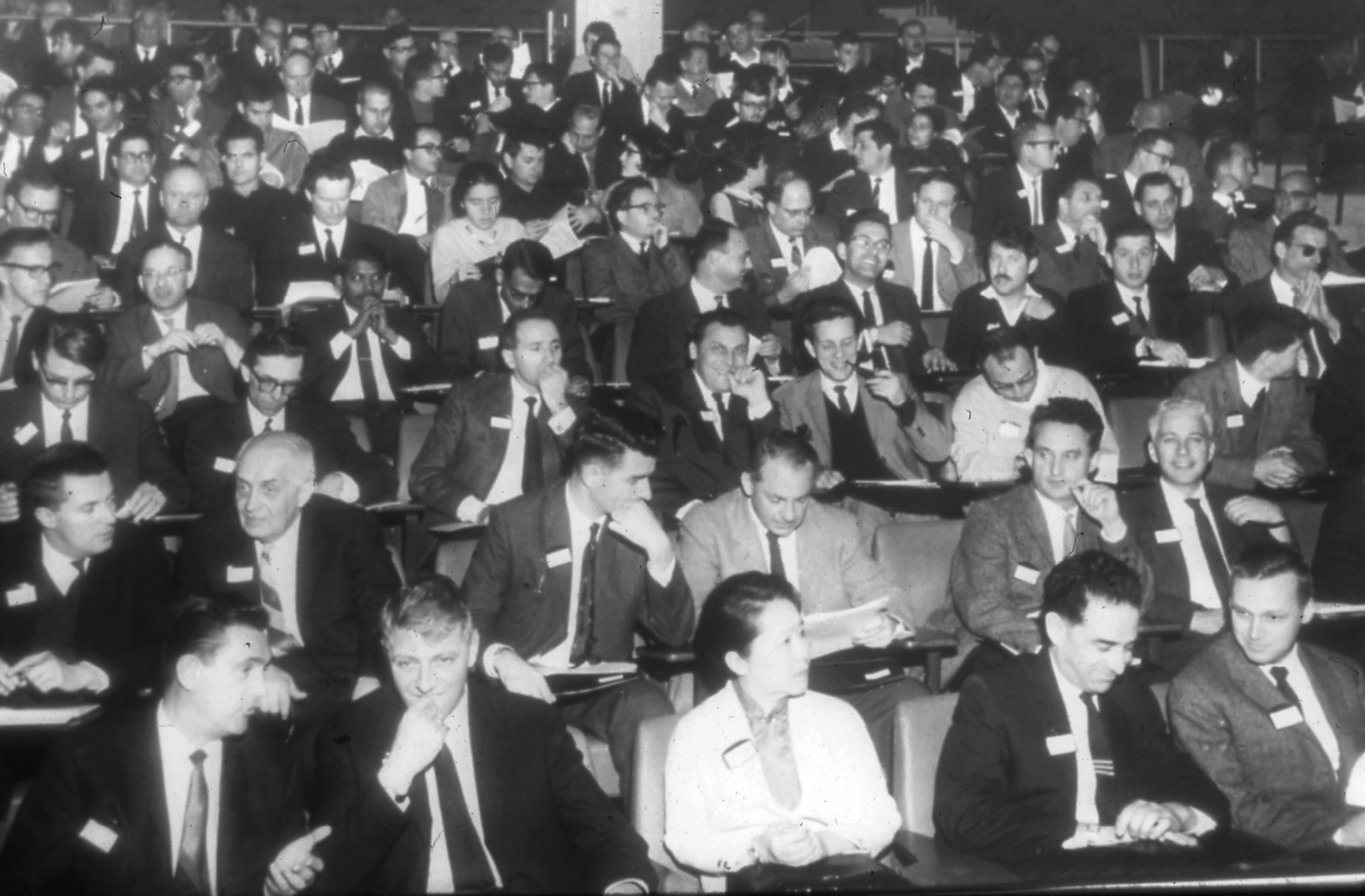 Chien-Shiung Wu (bottom center) at the second International Conference on High-Energy Physics and Nuclear Structure in Rehovot, Israel, in 1967. (From the American Association of Physics Teachers, courtesy of the AIP Emilio Segrè Visual Archives.)