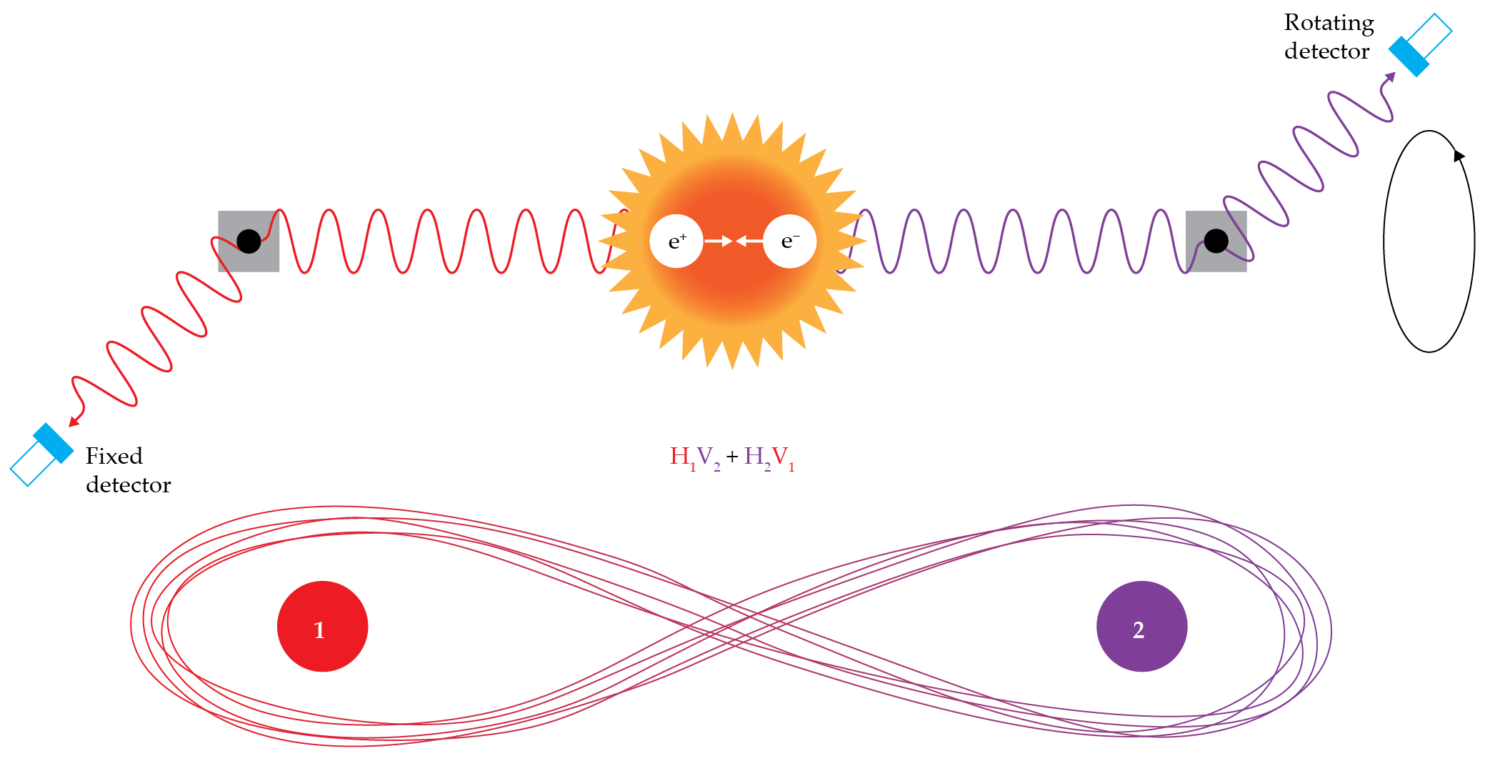 His proposal involved the detection of an entangled pair of gamma-ray photons produced by the annihilation of the electron and positron. Wheeler highlighted that the gamma-ray photons mainly come from the spin-singlet state—a quantum state characterized by antiparallel spins and a total angular momentum of zero. The conservation of total angular momentum requires that the gamma-ray photons head in opposite directions with orthogonal linear polarizations.