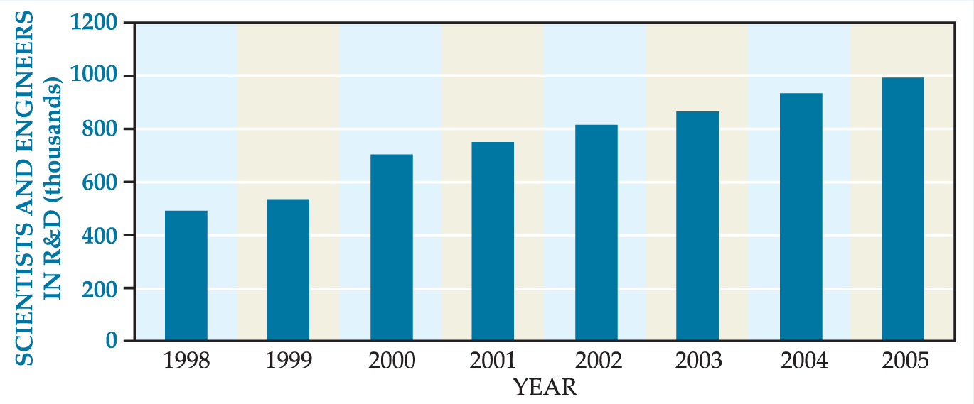 A third component of the plan deals with ongoing reforms in S&T and the further development of an integrated national system of institutions supportive of research creativity and technological innovation. It highlights important objectives pertaining to the continued reform of several government research institutes, changes in the management of S&T, and the need to encourage Chinese industrial enterprises to assume a leading role in the nation’s innovation system. Furthermore, it includes policies to promote industrial research and support for small and medium-sized enterprises. The new emphasis on the central role of industry reflects growing concerns that China’s companies are not generating enough intellectual capital to support the introduction of new, commercially viable products and services.
