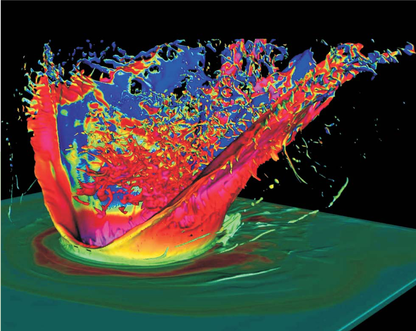 Beyond such well-established aids to theorists and experimenters, the exponential growth of computer power is now launching the new field of computational science. Multidisciplinary computational teams are beginning to develop large-scale predictive simulations of highly complex technical problems. Large-scale codes have been created to simulate, with unprecedented fidelity, phenomena such as supernova explosions (see figures 1 and 2), inertial-confinement fusion, nuclear explosions (see the box on page 38), asteroid impacts (figure 3), and the effect of space weather on Earth’s magnetosphere (figure 4).