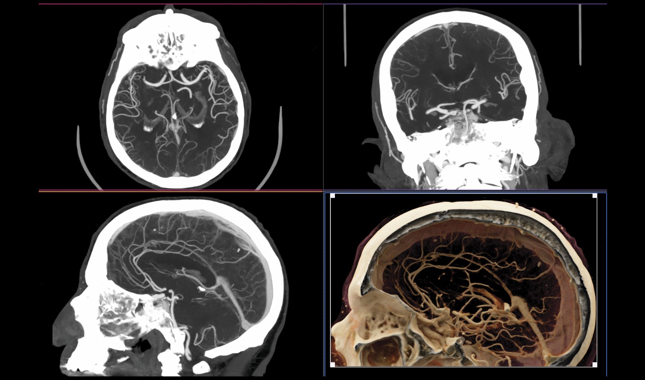 Blood vessels in the brain. Once referred to as CAT (computed axial tomography) scanners because the data were acquired and reconstructed in the axial plane, modern CT systems have submillimeter detector pixels along the