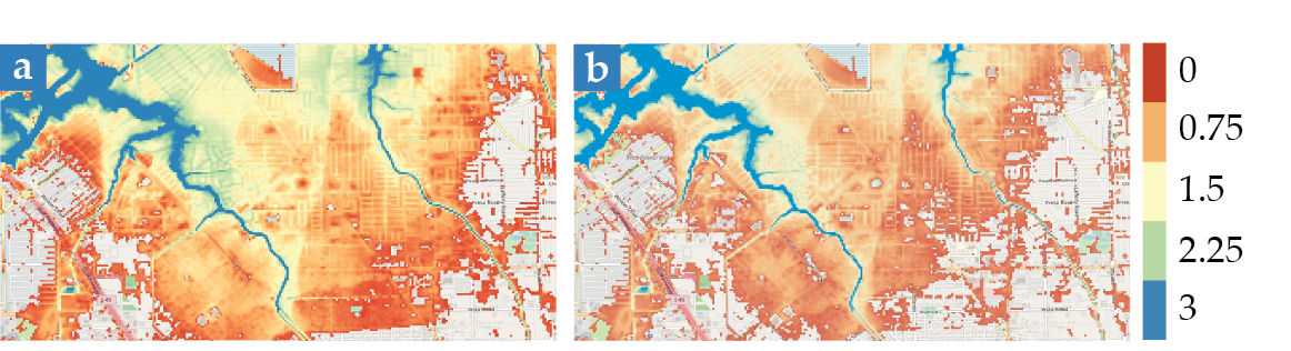 Actual and counterfactual flood simulations in Texas’s South Houston and Pasadena neighborhoods during Hurricane Harvey. (a) The flood that was. (Adapted from ref.