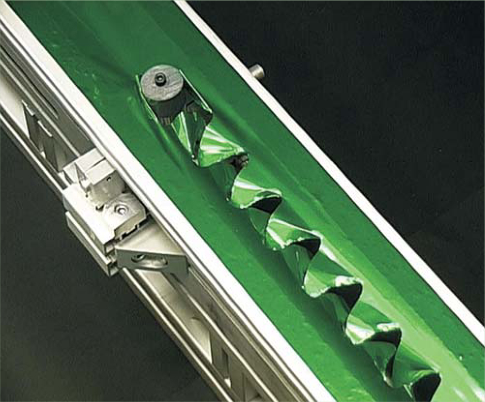 Figure 4. A wavy crack pattern is created by dragging a blunt cutting tool through a thin plastic sheet gripped along its sides.10