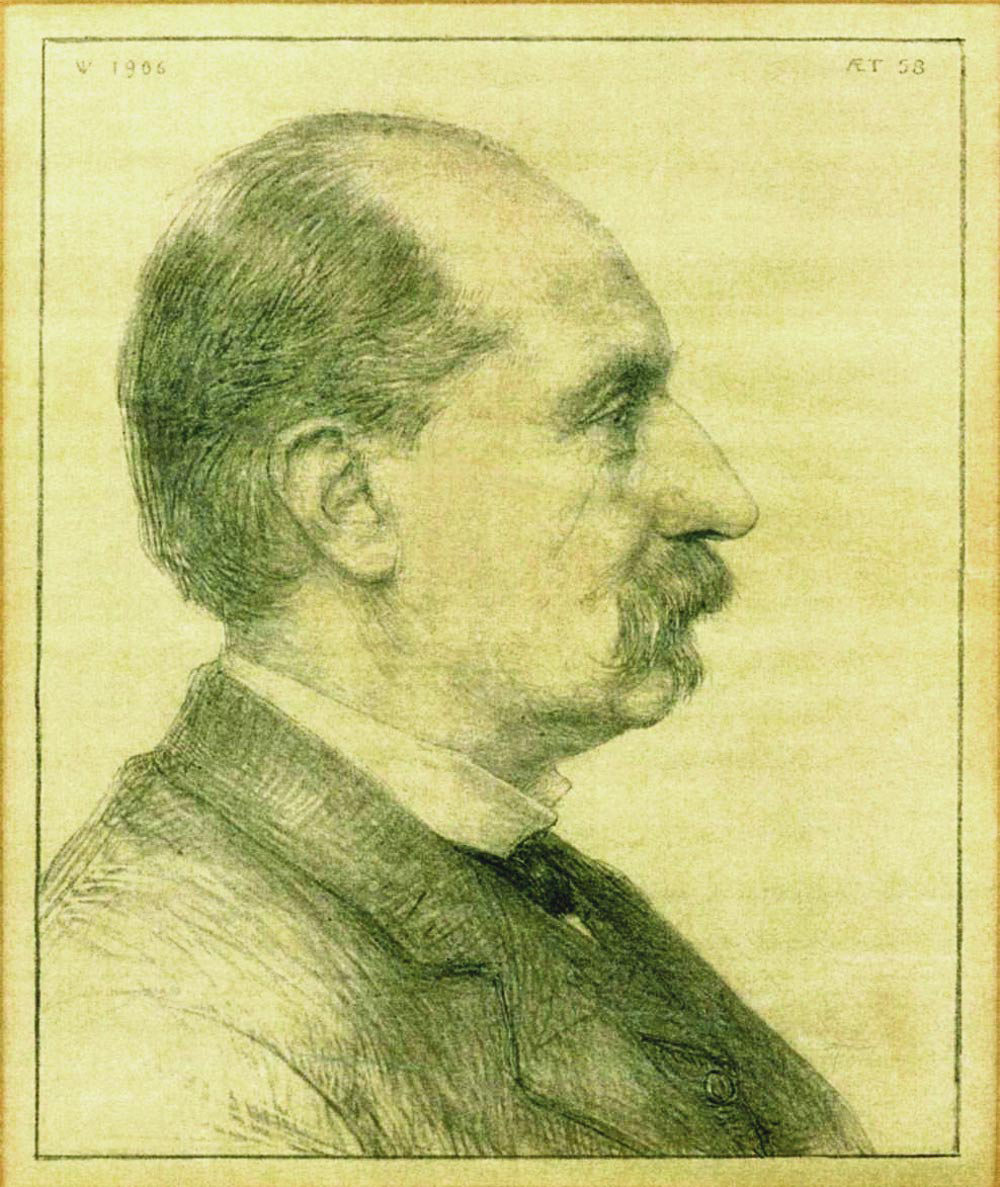 Figure 1. Diederik J. Korteweg in profile, as sketched by Dutch artist Jan Veth in 1906.