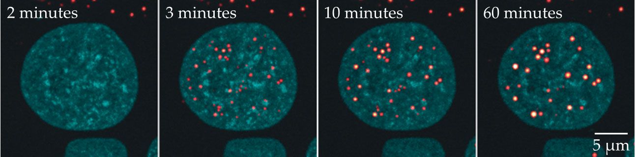 They are thought to enhance the transcription of messenger RNA (mRNA) by concentrating the required transcriptional machinery, such as transcription factors, cofactors, and polymerases. Interestingly, the study found that as soon as the newly transcribed mRNA exceeds a certain set point, it can promote the dissolution of the condensate and thereby arrest transcription. This gives rise to a negative feedback circuit, which could reliably control the duration and output of transcription despite potential disturbances.