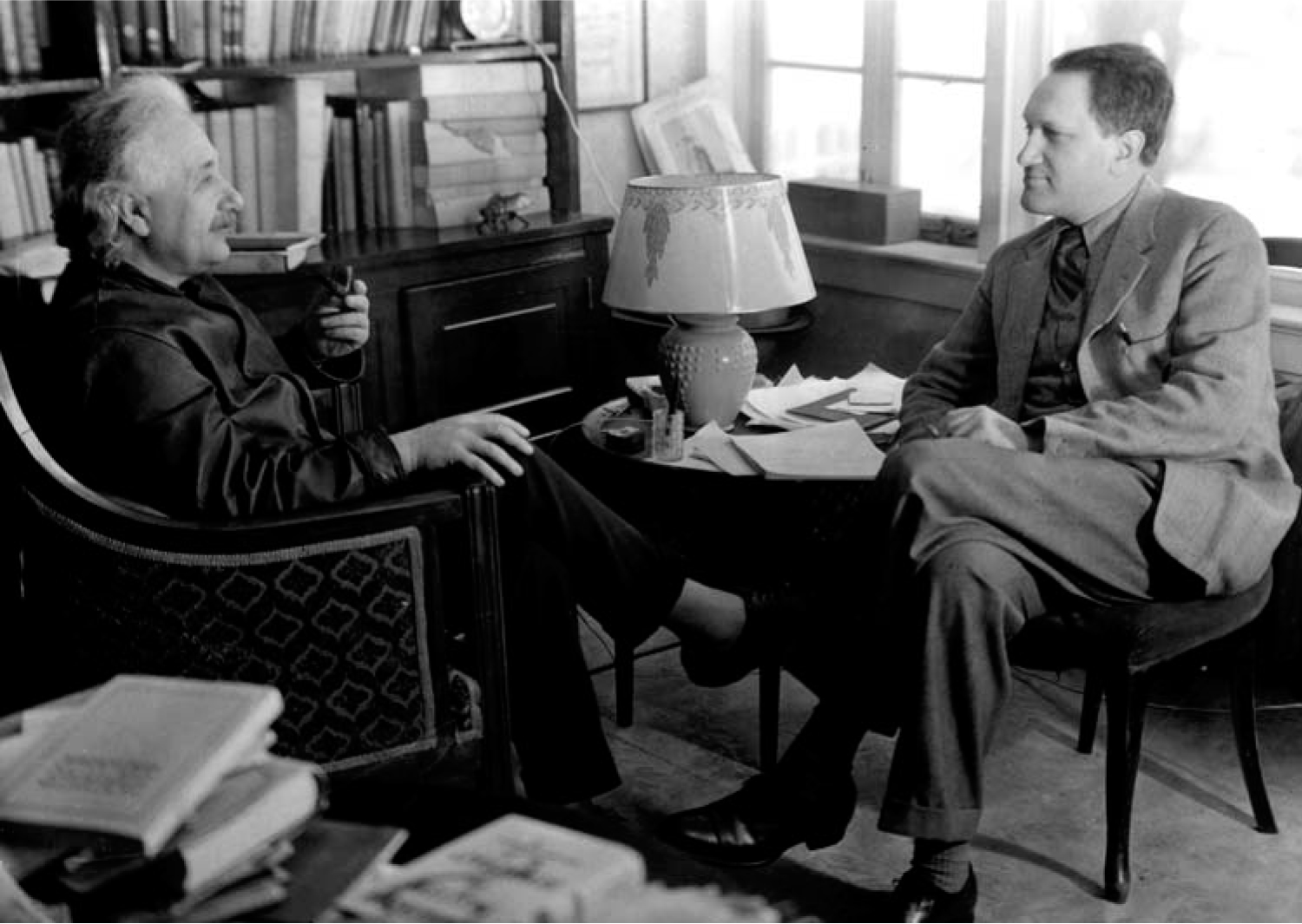 Figure 2. Albert Einstein and Leopold Infeld in Einstein’s Princeton, New Jersey, home in 1938.
