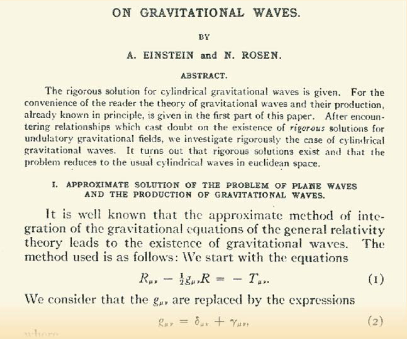 But Einstein had been closer to a solution than he thought and it was here that Robertson made his key contribution, at least according to remarks made by Rosen in a later paper of 1955.