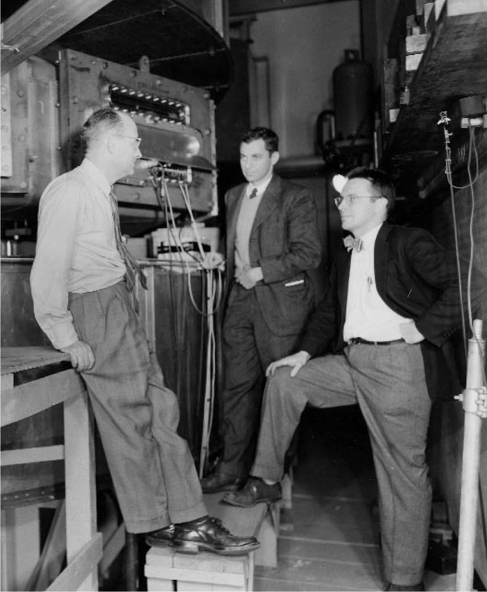 Figure 4. At The University of Chicago’s 170-inch synchrocyclotron in 1952 are Fermi, Herbert Anderson, and John Marshall.