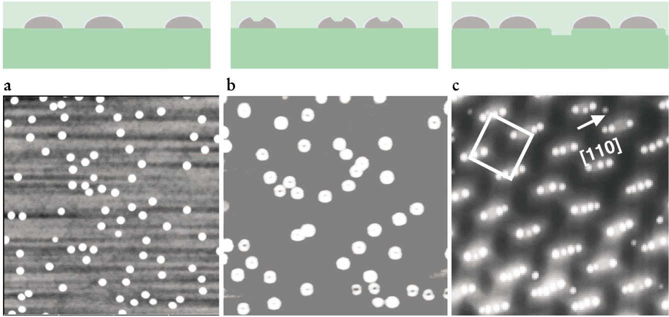 though still in a random array (figure 1b). Remarkably, the random array of islands can be changed into a periodic one by controlling the quantum-dot nucleation on the surface (figure 1c).