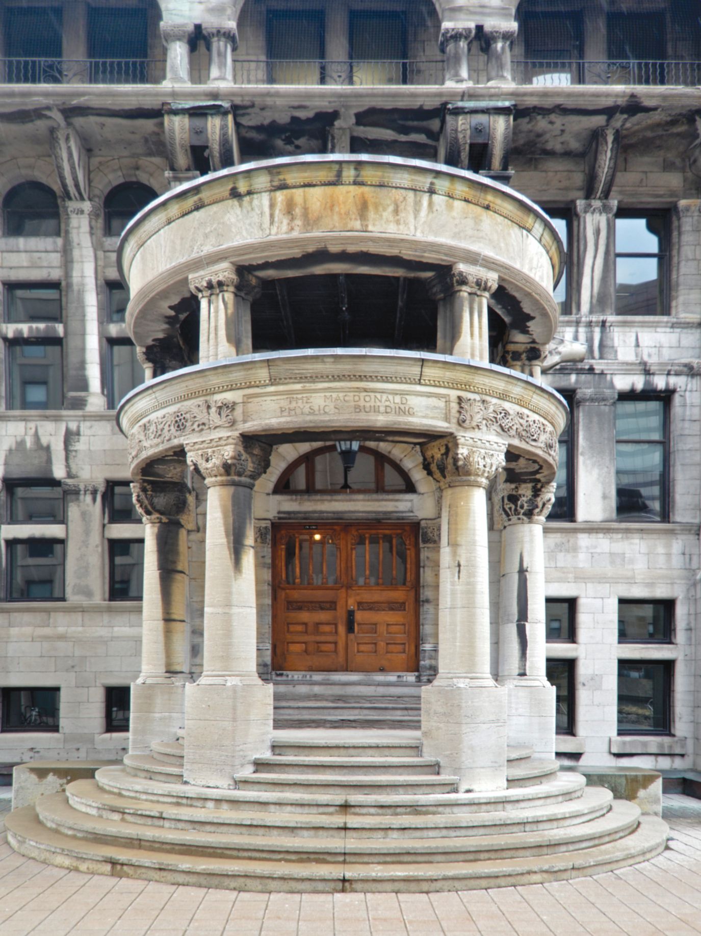 Figure 2. Original entrance to the Macdonald Physics Building (now the Macdonald-Stewart Library Building) at McGill University. (Photo by Selbymay/Wikimedia Commons/CC BY-SA 3.0 Figure 3. Ernest Rutherford in his laboratory in the Macdonald Physics Building at McGill University, 1905. (Courtesy of McGill University, Rutherford Museum, the AIP Emilio Segrè Visual Archives.)