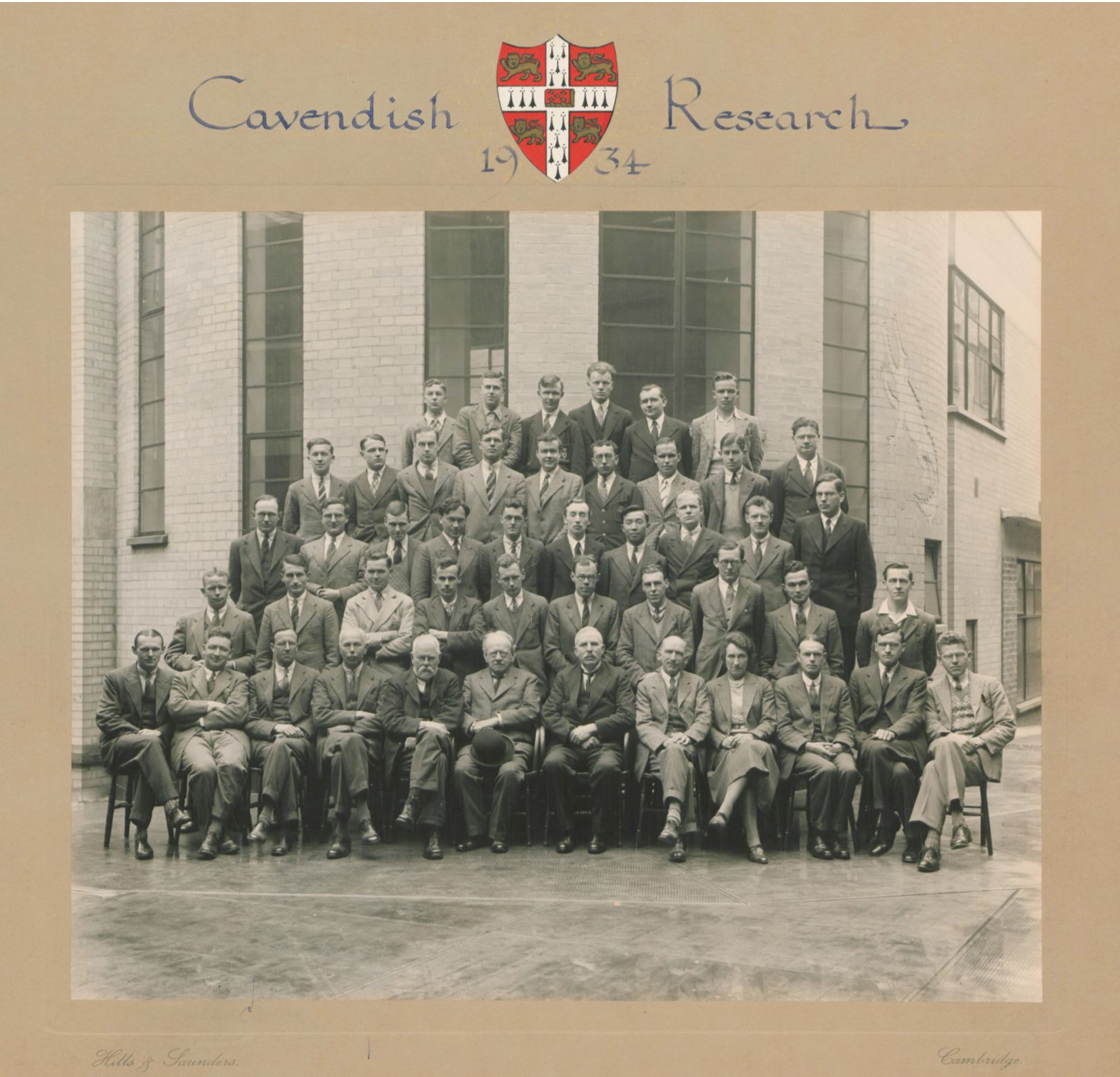 Cavendish Laboratory group photo from 1934, including James Chadwick (front row, third from left), J. J. Thomson (front row, sixth from left), and Ernest Rutherford (front row, seventh from left). Photograph by Hills and Saunders, Cambridge. (Courtesy of Cavendish Laboratory, Cambridge University, the AIP Emilio Segrè Visual Archives, Bainbridge Collection.)