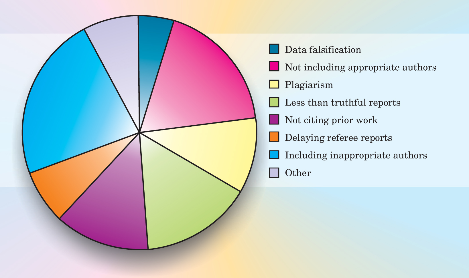When APS junior members were asked if they had ever observed or had personal knowledge of ethical violations while they were graduate students or postdocs, fully 39% of those responding to the survey said yes. The top seven offenses they cited are shown in figure 1. “Fabrication of data” represents only 4% of the violations reported by the junior members. But that is still a big enough number to cause concern in the physics community.