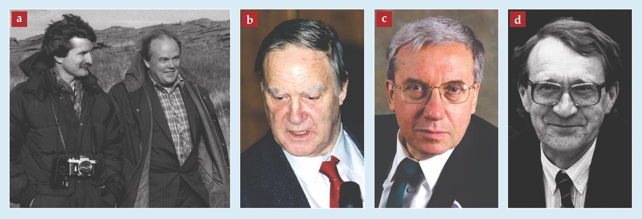 Figure 1. Leaders of the Committee of Soviet Scientists. (a) Evgeny Velikhov (right) with Thomas Cochran of the US Natural Resources Defense Council at a Soviet test site in Kazakhstan in 1986. (Photo from RIA Novosti.) (b) Sergei Kapitsa in the 1980s (courtesy of Scientific American). (c) Recent photo of Andrei Kokoshin (courtesy of Russian International Affairs Council). (d) Roald Sagdeev in 1988.