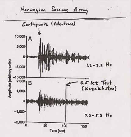As figure 2 shows, however, the US at that time was able to detect even low-yield explosions in Soviet Central Asia. The figure displays a 1979 seismogram from the US–Norwegian NORSAR seismic array that I personally showed to Gorbachev in July 1986. It reveals that NORSAR detected a half-kiloton chemical explosion at the Soviet Union’s main test site in Kazakhstan—during an earthquake far away in the Western Pacific.