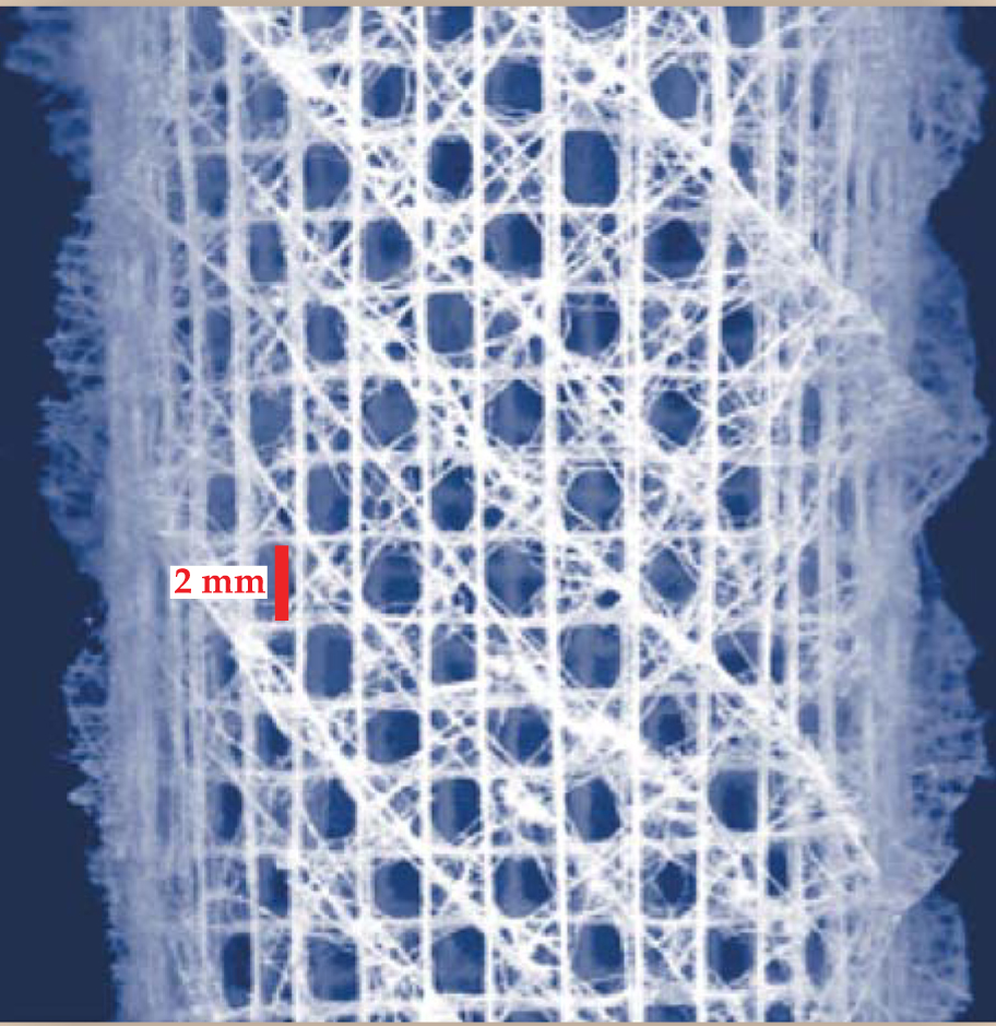 Figure 3. Skeletal structure of a natural sea sponge, produced by protein templating of mineral growth in an aqueous marine environment under mild conditions. Sea sponges, and many other biological materials, are examples of nanocomposite materials, which grow under conditions controlled at the nanometer scale, and are an elegant example of the potential for designed materials.