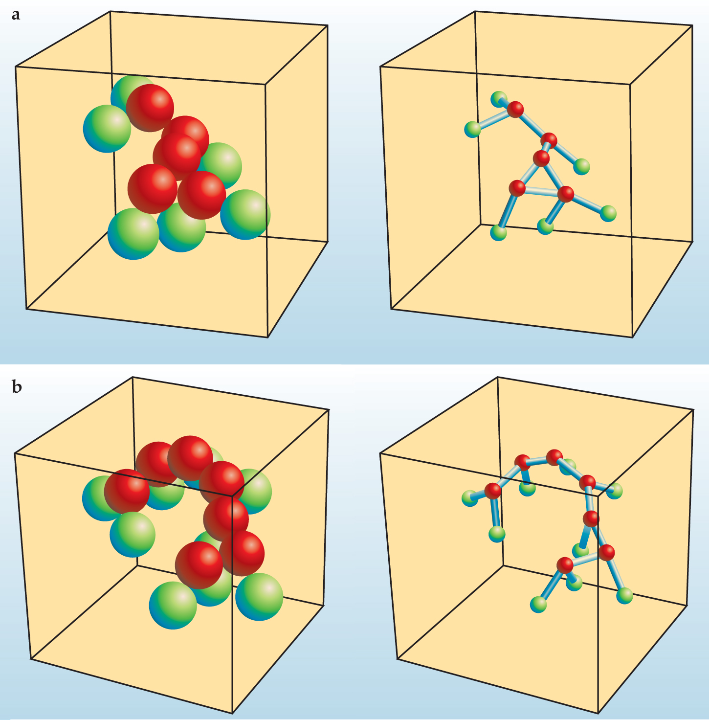 The enhanced stability of loops in complex bridges means that the number of base particles is reduced for a given n. That loop-induced stability also means that the longer the bridge, the more likely it is to be complex, since linear bridges become exponentially rare as their length increases. 3 Moreover, the results of a kinetic “tube model” of linear bridges suggest that small linear bridges are almost never flat. 4 In the rare event that they remain linear as they become longer, linear bridges get weighed down, arching over to form domes supported by the walls of the container.