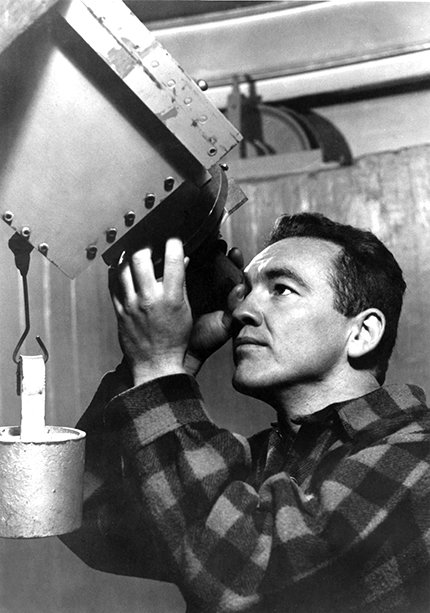 Figure 1. Walter Orr Roberts as a young man engages in his passion: observing the Sun through a coronagraph. (Courtesy of the University Corporation for Atmospheric Research archives.)