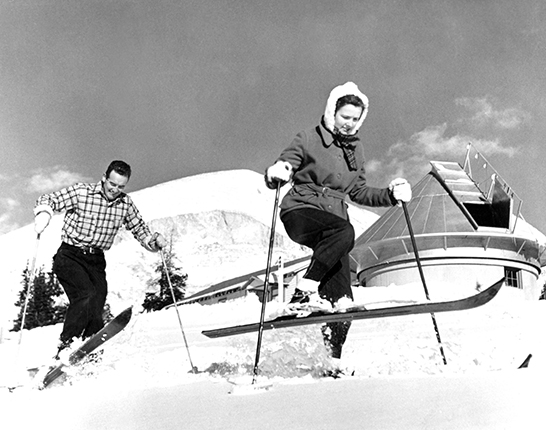 Figure 4. Walter and Janet Roberts enjoy some recreational time outside the Fremont Pass observatory in the Colorado mountains. The couple lived for many years in isolation there before moving to Boulder. (Courtesy of the UCAR archives.)