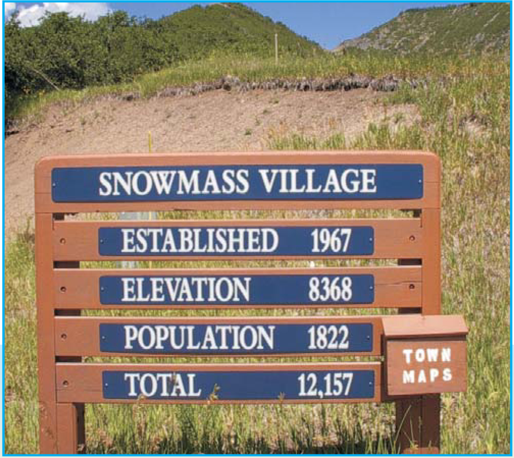 Figure 2. Sign error. Visuals can help give a humorous touch to a scientific presentation. This welcome sign at Snowmass Village indicates either a town in need of some serious science outreach or a community with a good sense of humor.