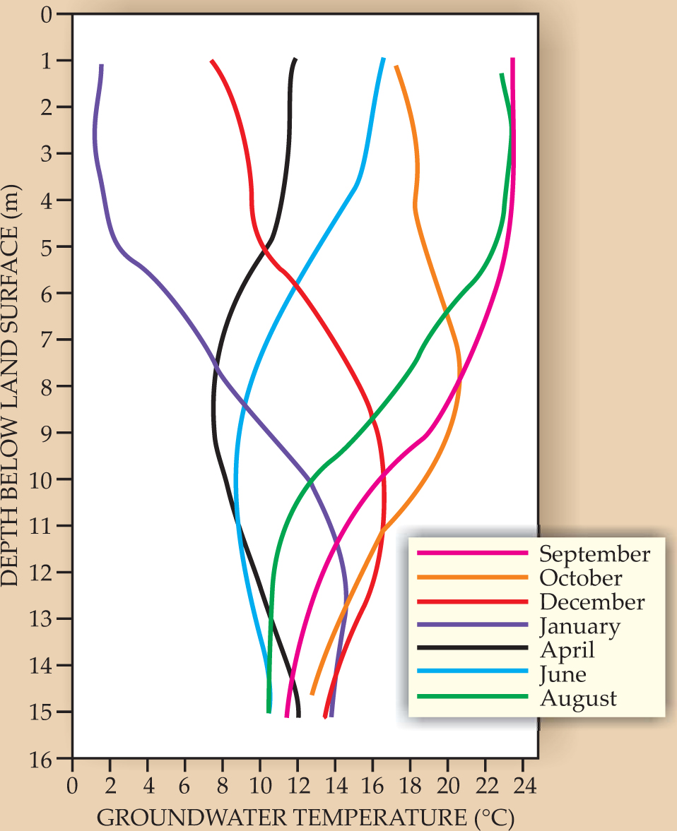 Researchers recognized in the early 19th century that temperature measurements could be used to trace groundwater movement, since seasonal changes in the temperature of surface water are reflected in the groundwater temperature, as shown in figure 4. Current interest in using heat as a tracer is motivated in part by the development of new technologies, such as fiber-optic cables, for measuring temperatures in surface and subsurface water. 10