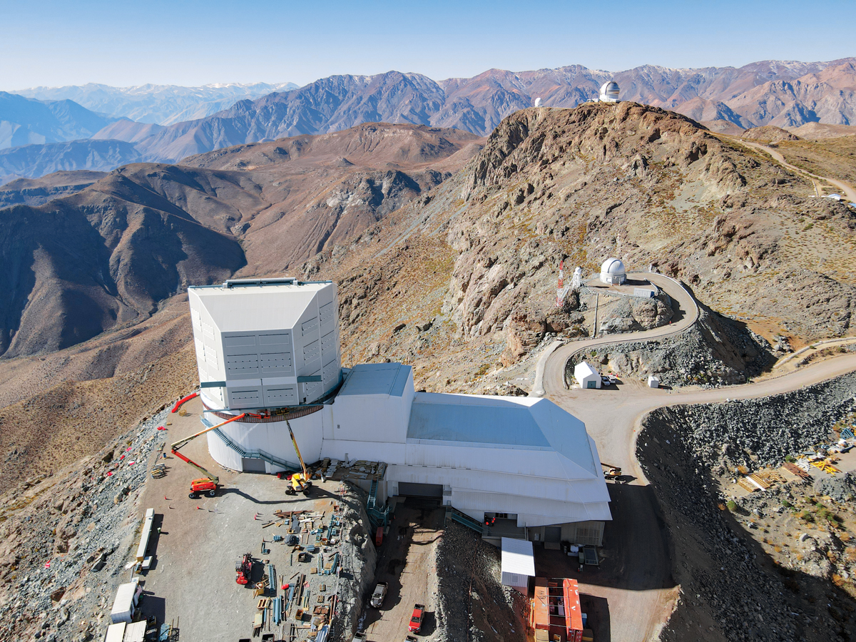 The Vera C. Rubin Observatory, which will carry out one of the next-generation sky surveys, under construction in Chile in 2021. (Image from the Rubin Observatory/NSF/AURA/O. Rivera/CC BY 4.0