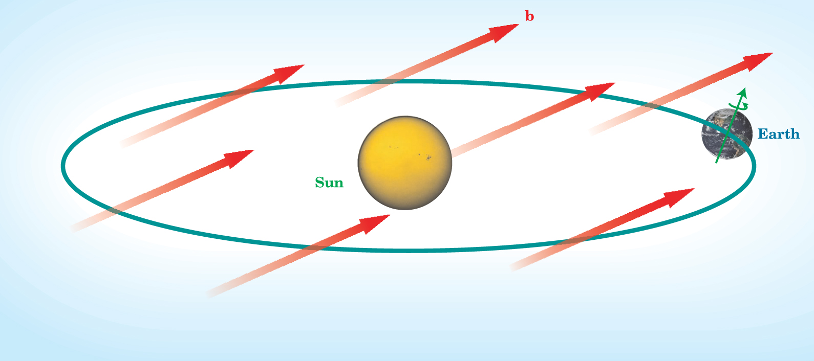 Figure 1. A uniform background vector b defines a preferred direction in space and so violates Lorentz invariance. In effective field theories like those discussed in the text, b is related to the three-vector part of a four-vector.