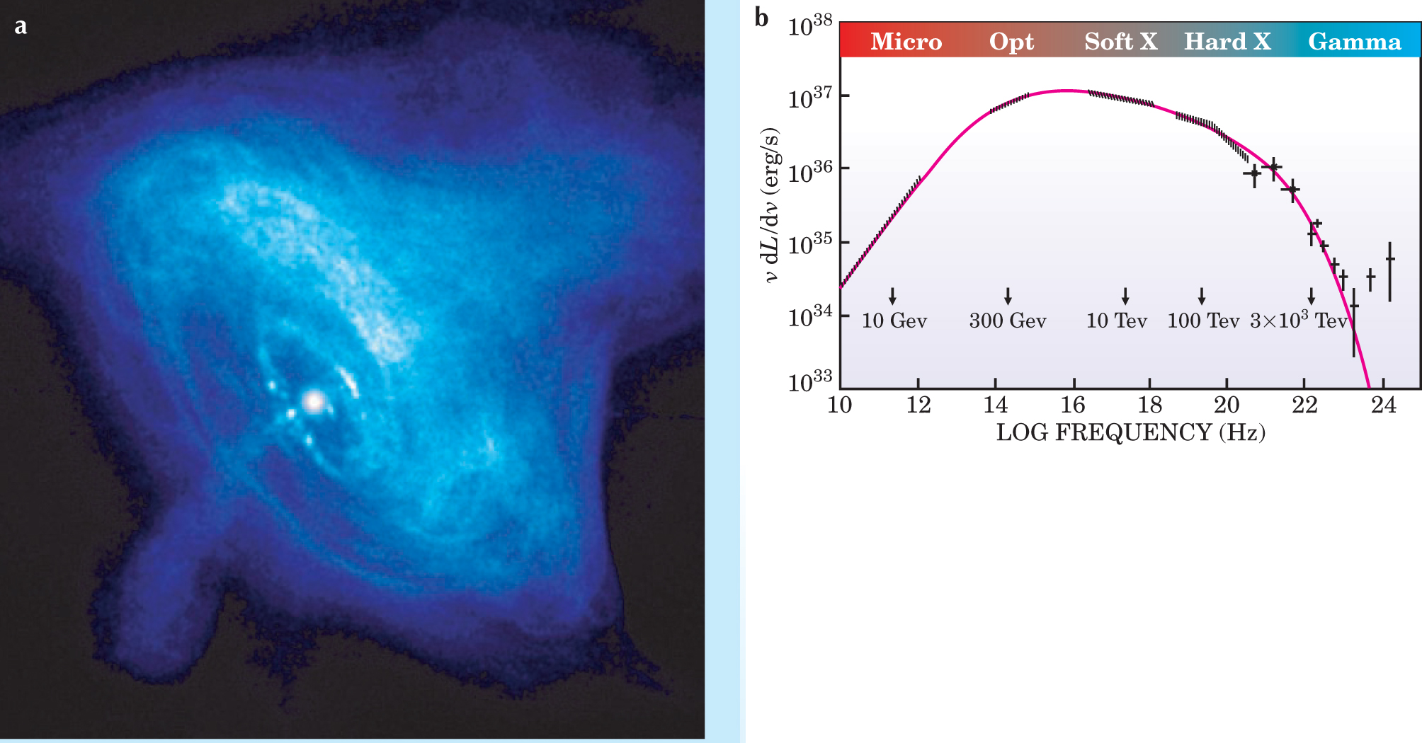 (Panel b adapted from A. M. Atoyan, F. A. Aharonian, Mon. Not. R. Astron. Soc. 278, 525, 1996.)