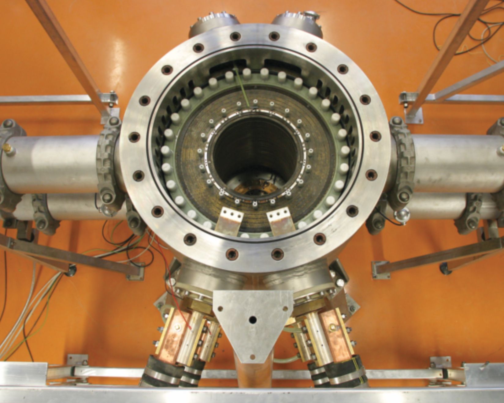 This 33 T Bitter magnet at the High Field Magnet Laboratory in Nijmegen, the Netherlands, is used to measure superconductors in very strong magnetic fields. (Image courtesy of Dick van Aalst, Radboud University, The Netherlands.)