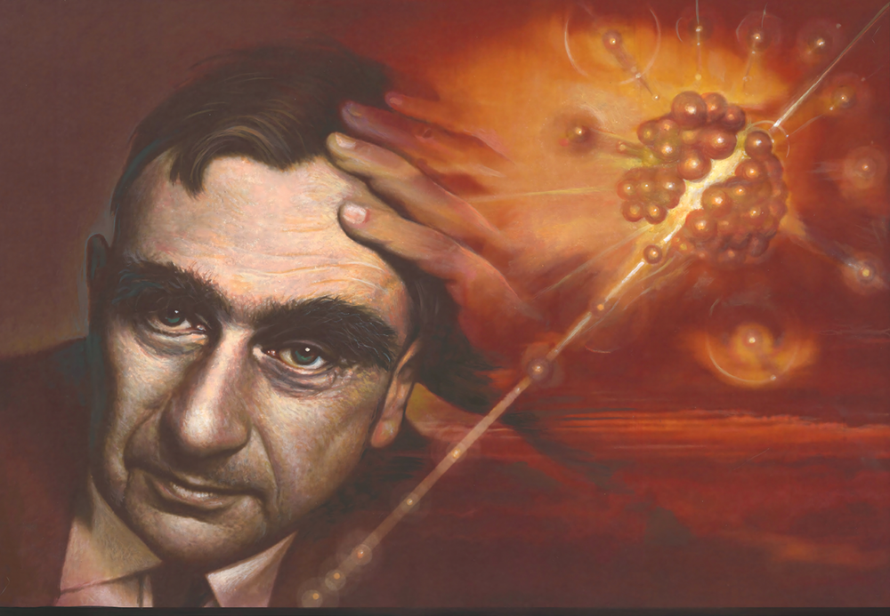 Edward Teller. Although he may have worried about the potential danger of the sudden energy release from fission-triggered fusion reactions between abundant nitrogen-14 nuclei in the atmosphere, Teller argued for such reactions to enhance the power of nuclear weapons. (Illustration by David McMacken.)